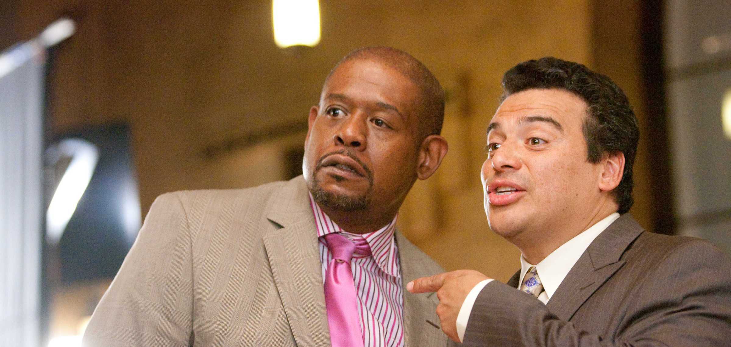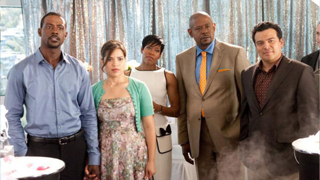 The wedding-bound couple head home to Los Angeles to break the news to their unprepared, and only somewhat racist patriarchs, played by Forest Whitaker and Carlos Mencia. Apparently unfamiliar with the thin-ice romantic comedy genre he skates, the filmmaker relies on unmotivated slapstick set pieces that perpetually fizzle out.