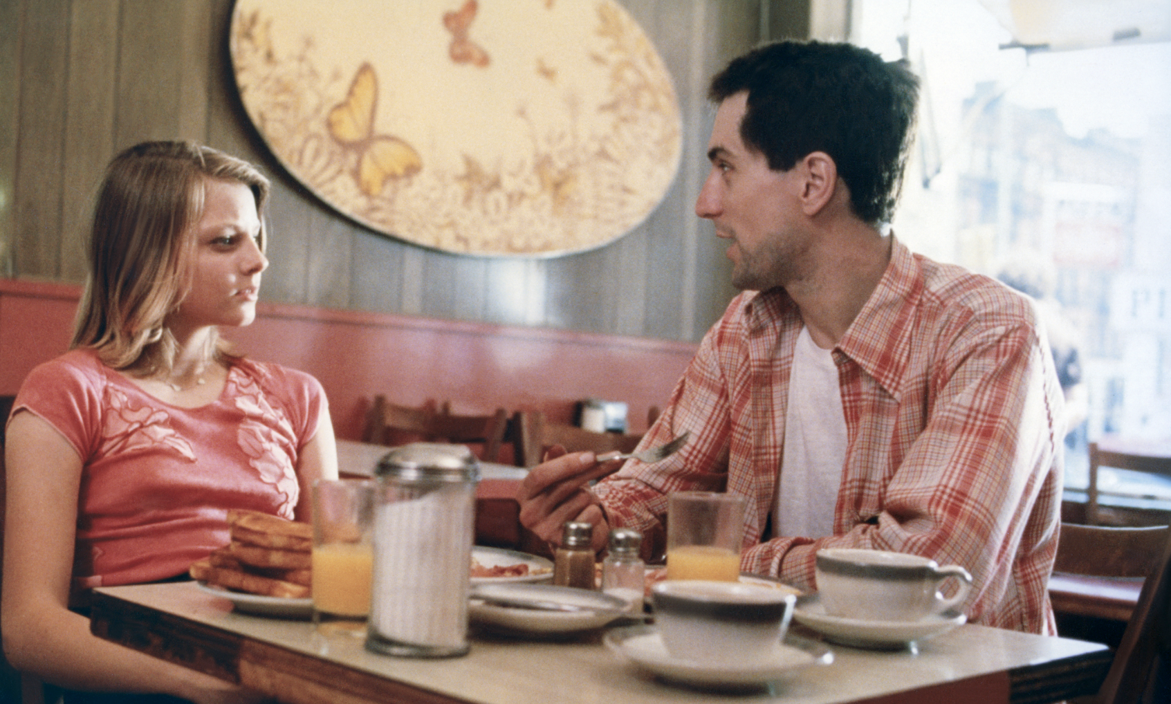 Practicing his moves in front of a mirror boosts his confidence. The movie embeds the viewer so deeply inside Travis’s conscious and subconscious mind that we can’t help empathize with him, regardless of how messed up he is. Here lies the genius of the film. Objectively, Travis has good qualities too. He also wants to rescue a child prostitute named Iris (Jodie Foster), though it's not his priority.