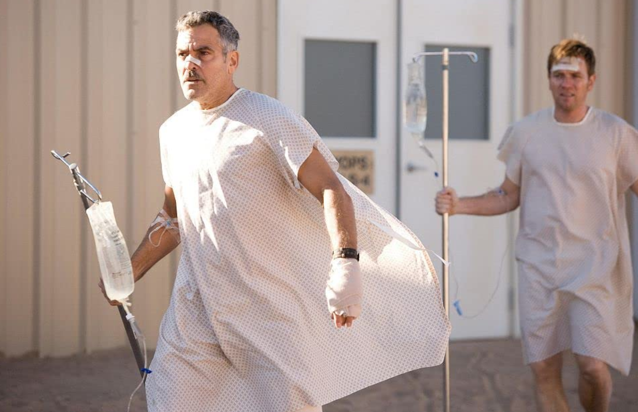 Skip allows an adventurous young journalist named Bob Wilton (Ewan McGregor) to tag along with him on a black-ops mission into Iraq. Foamy flashback comic set pieces run parallel to a meandering plot in which Skip and Bob get lost and kidnapped, then lost again.