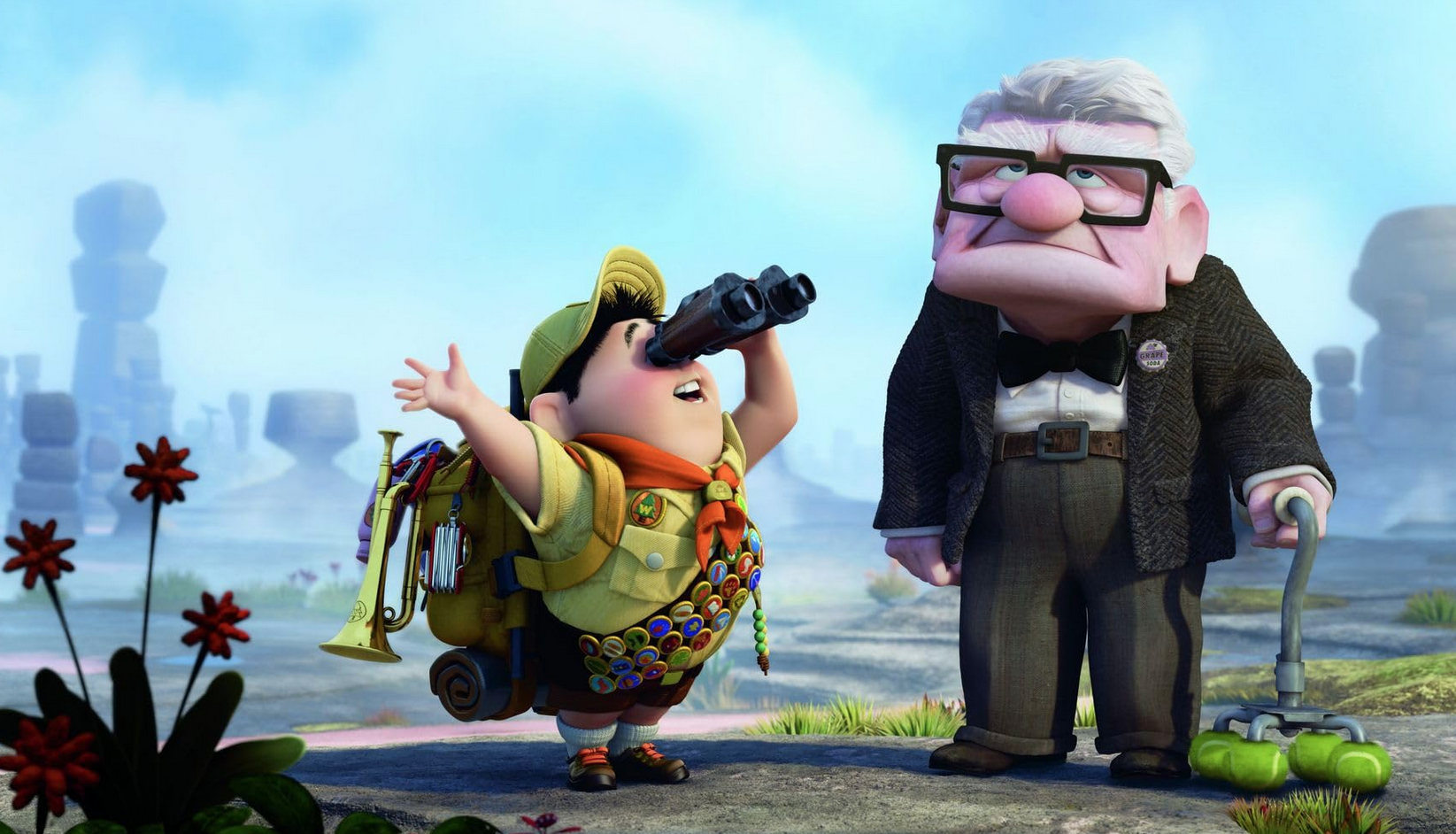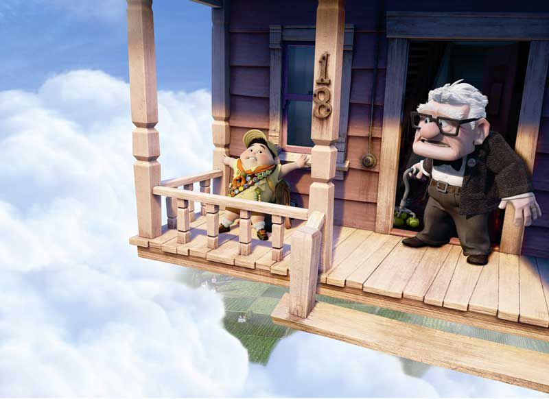 Russell carries a full backpack, loaded down with enough stuff to make him weigh roughly the same as Carl. The duo's combined mass works to their advantage when, after surviving a huge storm that shakes up Carl's mobile house pretty well, they arrive in South America and have to tug the cottage like a giant kite to get to Paradise Falls.