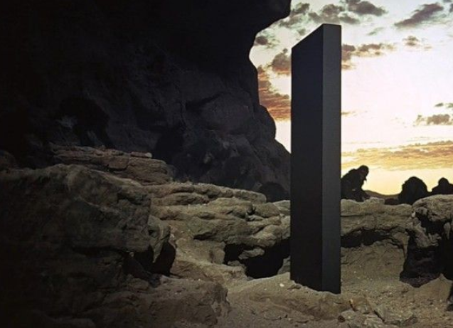 The ambitious movie is part philosophical reverie, part social satire, and part sheer cinematic poetry. The fantastic narrative structure jumps from a pre-historic era, when apes first discovered using bones as tools and as weapons, to a futuristic space-age when man discovers proof of intelligent alien life in the form of a gigantic black monolith on the moon. There is likely no creepier a signifier of an unknown life form than something so inscrutable than the object that Clarke and Kubrick put before us. This dark monument could just as easily be a seamlessly sealed tomb.