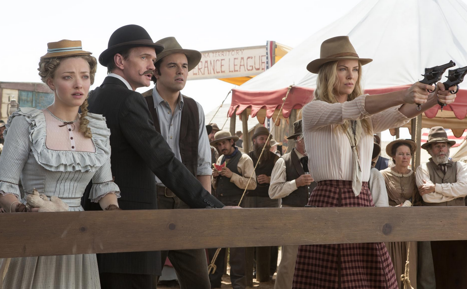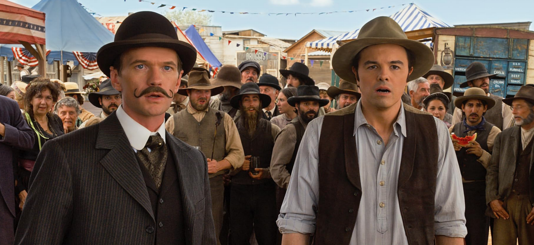Of the hundred or so gags, jokes, and one-liners that comic genius Seth MacFarlane throws at the wall over the course of this bawdy and sometimes grotesque Western comedy, nearly half of them connect with a funny bone. It’s not a great ratio of wins to losses, but in the realm of Hollywood comedies it’s better than average.
