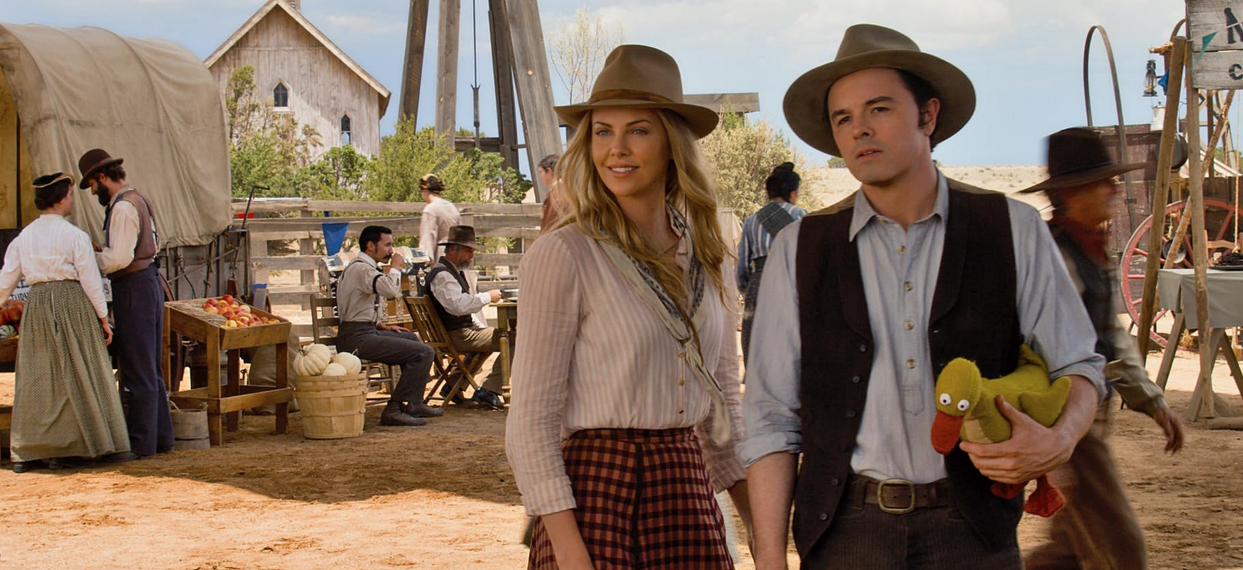 MacFarlane’s biggest oversight lies in casting himself as the film’s comic leading character Albert, a fish-out-of-water if ever there was one. Arthur lives at home with his flatulent father and barely glimpsed mom. He’s an unskilled sheep farmer who dreams of leaving the frontier life behind. MacFarlane doesn’t know whether to play Arthur as a straight man or a funny guy, so he ends up doing dual-duties — a big no-no. With his manscaped eyebrows and perfectly coiffed hair, MacFarlane’s Arthur comes across as more of a mannequin-vessel for the actor’s radio-quality voice than a jester of dubious intent.