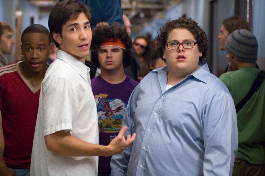 Uncle Ben (Lewis Black of “The Daily Show with Jon Stewart”) steals the movie as a fiercely blunt anti-authoritarian social renegade who Bartleby enlists as Dean and sole faculty member of his South Harmon Institute. Ben declares the film’s theme when he utters the immortal words, “What is learning? It’s paying attention. It’s opening yourself up to this great big ball of &%$@ that we call life.” Ben happens to be the eccentric uncle of Bartleby’s best friend Sherman (Jonah Hill) who suffers hazing rituals at a fraternity at the authentic Harmon College. Sherman takes the brunt of most of the jokes, but we never get to see enough of his personality to embrace him as the protagonist’s alter ego the writers intended him to be.