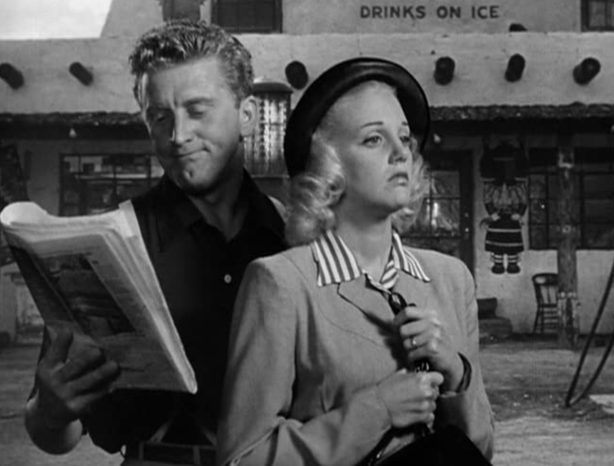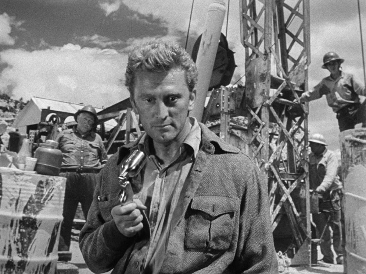 Kurt Douglas seethes with desperation and a contemptuous rejection of humanity. The portrayal is repulsive as it is mesmerizing. The dirty newspaperman plays his "ace in the hole" when he cooks up a vile scheme with an election-hungry sheriff (Ray Teal) to milk Minosa's story for "seven days" by having a rescue team drill into the mountain from the top instead of going in as quickly as possible from the point of entry.