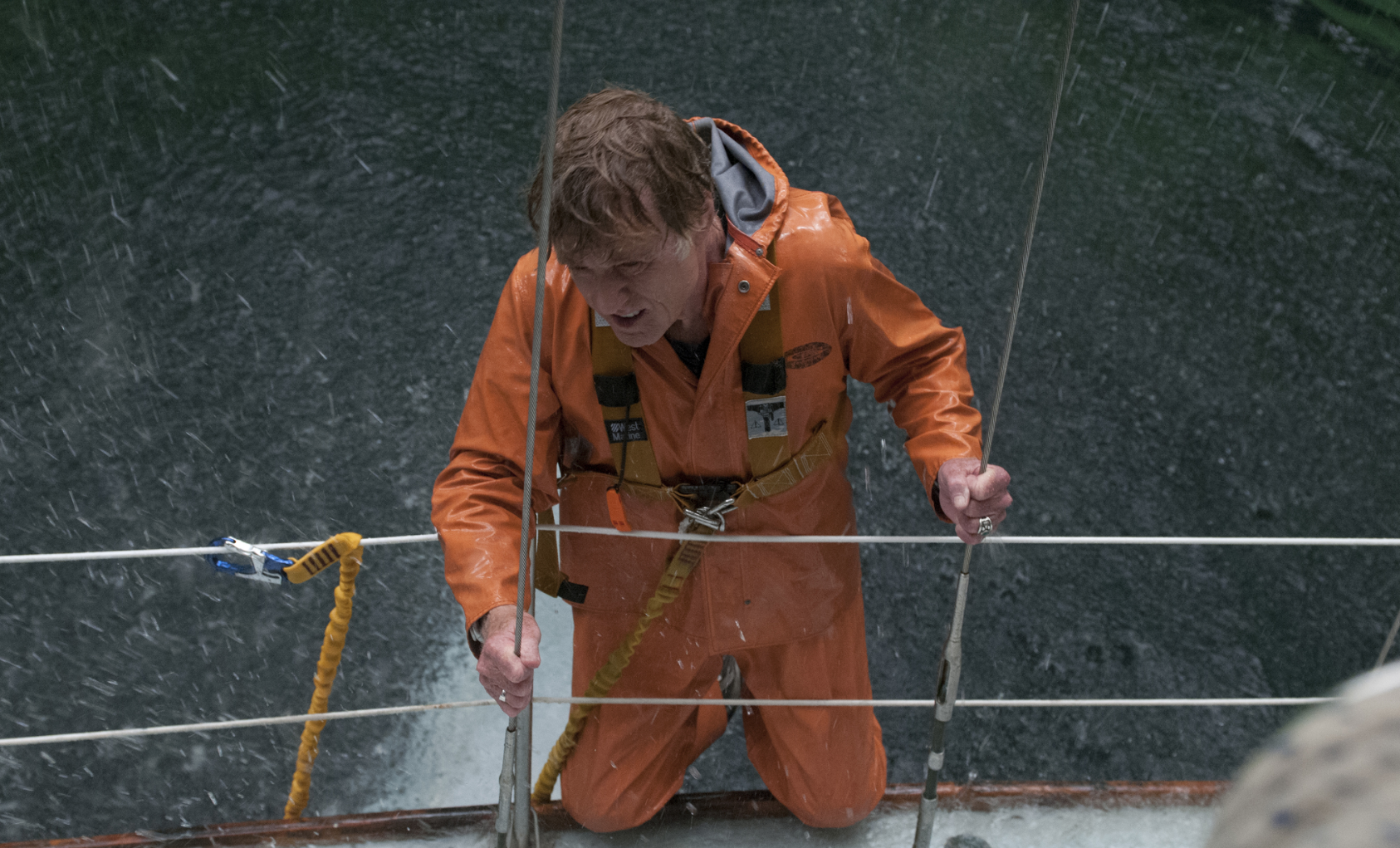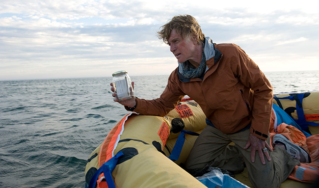 Existentialism prevails. “Our Man’s” constant struggle for existence takes on a macro-micro vision of cool-headed logic used to battle increasing odds against him. Terrible storms toss the sailboat like a child’s toy. The captain is forced to improvise and learn on the fly. Navigating his way into a shipping lane seems to offer hope for rescue. Redford’s stoic character perseveres with grace and determination in spite of the fierce conditions he faces.