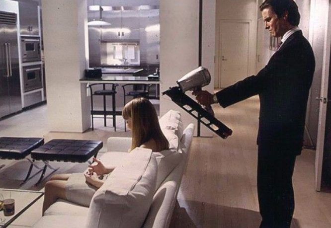 More than anything, entitled Patrick wants to “fit in,” namely by inflicting his inflated sense of status on all people he comes in contact with. “His father practically owns the company” he works for. Bateman’s name is an obvious nod to Norman Bates of Hitchcock’s “Psycho.” Like Norman Bates, Patrick Bateman suffers from a dissociative identity disorder. At times he introduces himself as Pat, or as his perceived rival Paul Allen when opportunity serves him. He gets mistaken for his similarly blank-personality Wall Street associates.
