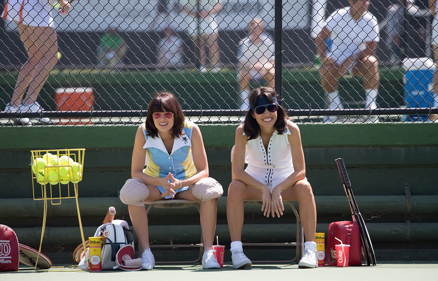 Upset by the much higher pay awarded to male tennis players over their female counterparts by the USLTA (under Jack Kramer – Bill Pullman), Billy Jean King and her business partner Gladys Heldman (Sarah Silverman) break with the USLTA to start their own women’s tennis tournament. Ironically, it’s a tobacco company that takes on sponsoring the Virginia Slims Womens’ Tennis Tournament.