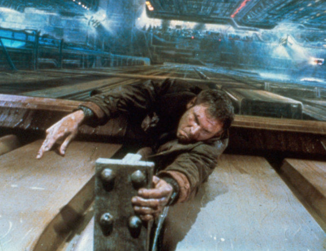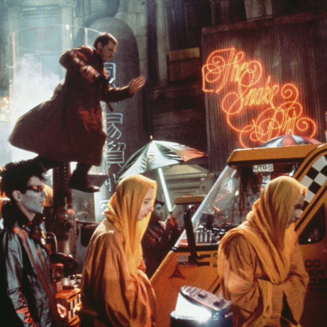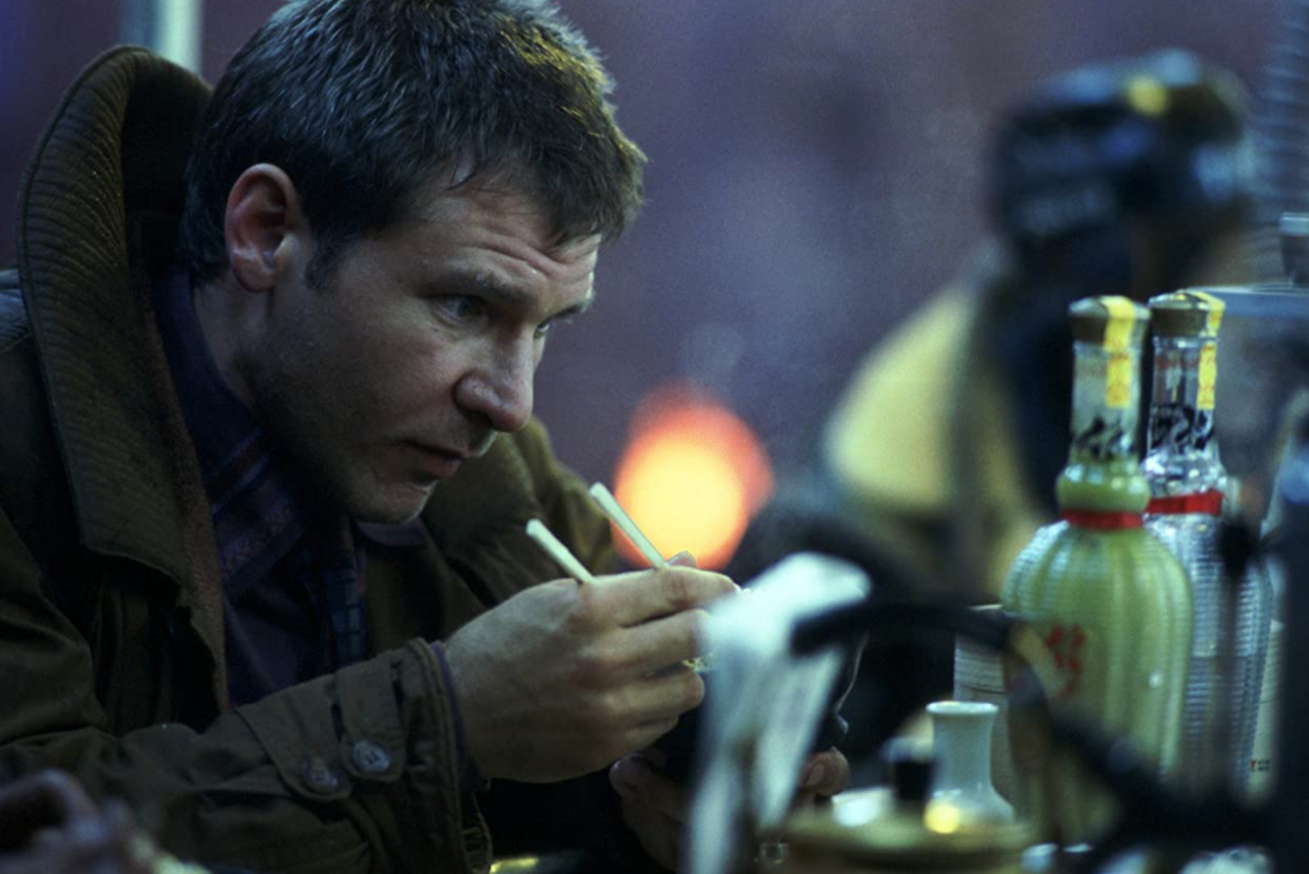 Rick Deckard (Harrison Ford) is a grizzled veteran “blade runner” — a career assassin of genetically engineered organic robots called replicants. Deckard dresses like an ironic transplant from a Dashiell Hammett novel. Here, Harrison Ford’s squeaky-clean Star Wars character Han Solo turns into a cynical and corrupt anti-hero with a romantic side.