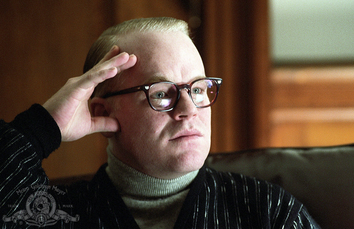 Philip Seymour Hoffman gives a tour de force performance as Truman Capote in a film that matches Hoffman’s authentic representation by way of its precise scope and immaculate execution. The filmmakers focus on Truman Capote’s determination to write a "non-fiction novel" as a genre–revolutionizing device to elevate himself as a public figure of literary excellence alongside Proust and Tennessee Williams.