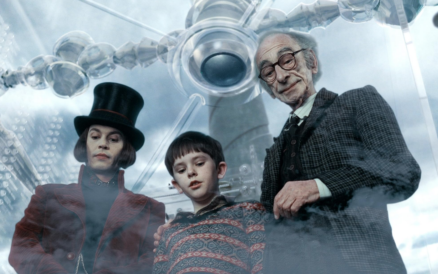 Charlie’s dad (Noah Taylor) and mom (Helena Bonham Carter) are nearly overshadowed in their affection for Charlie by Grandpa Joe (David Kelly) who once worked for Willy Wonka inside the chocolate factory before Wonka dismissed his employees due to internal spies attempting to steal his secret recipes.