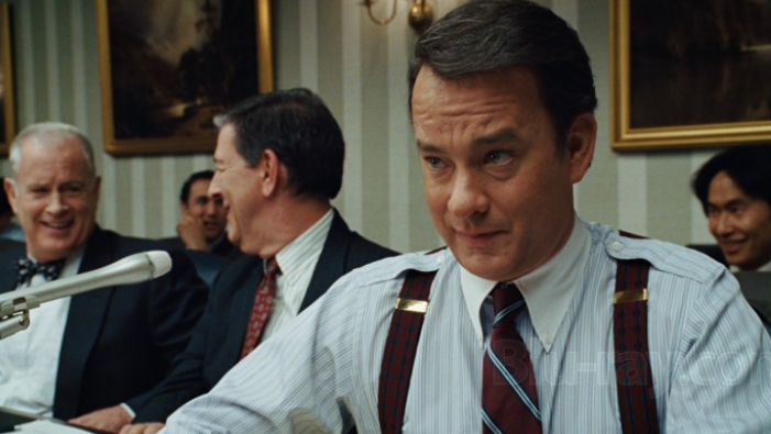 In place of a plot, screenwriter Aaron Sorkin (writer of television’s “West Wing”) supplants a stylistic veneer of dialogue gloss so thick that Tom Hanks and Julia Roberts are like giant fleshy insects encased in transparent amber. Their characters might bed down together in scenes that the filmmaker believes are provocative but the only bodily fluid flowing is greasepaint.
