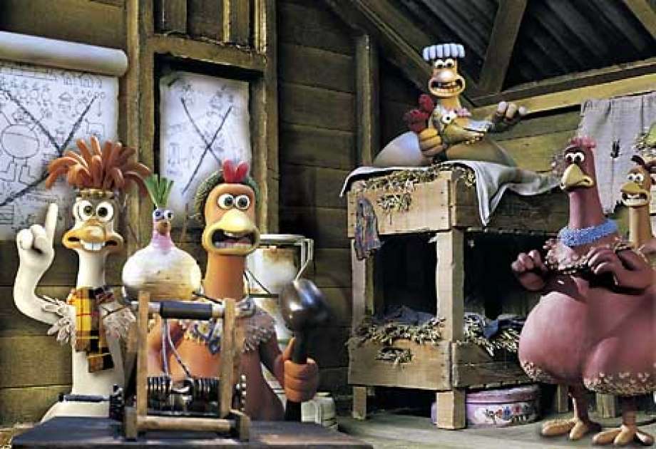 Peter Lord and Nick Park, the creators of “Wallace and Gromit,” have crafted a devilishly clever clay animation feature film that is thoroughly British in its humor. A band of hyper kinetic European chickens, imprisoned in a Stalag-type egg farm run by a tyrannical husband and wife team, struggle to escape with the questionable aid of a cocky American rooster named Rocky (voiced by Mel Gibson). Rocky is a circus-performing rooster who is inexplicably able to fly, or so it seems. It only follows that Rocky should be able to teach the fat little egg-laying chicks to get airborne long enough to escape over the barbed wire fence that keeps them on a course with early death when they stop producing enough eggs.