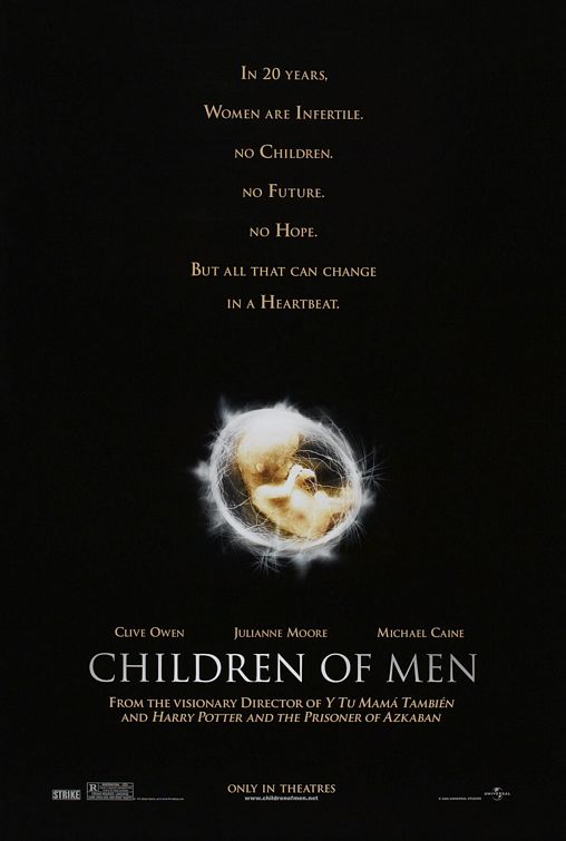 In 2027 England is a militzia-run fascist state obsessed with putting immigrants in outdoor cages and defending against terrorism after the rest of the world “collapsed.” Global infertility has whittled away at the population since 2009 when the last human child was born. England has become a fenced-off Orwellian monstrosity filled with surveillance cameras and a constant barrage of unrestricted media brainwashing. The streets of England resemble Kashgar, China with rickshaws vying for traffic lanes with decrepit busses.