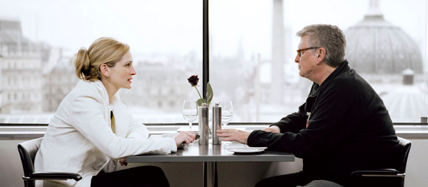 Alice also carries the subtext of the film's theme about the cruelty of love being equal to the savagery of sex. The thematic centerpiece of the film comes not in the much talked-about verbally graphic break-up scene between Clive Owen and Julia Roberts, but in the nightclub scene where Alice taunts the supplicating Larry with her naked flesh that she lords over him with compassionless mastery. The film hits its crescendo when the love-struck Larry is forced to admit that all he can desire from Alice is to gaze from behind at her glistening genitalia.