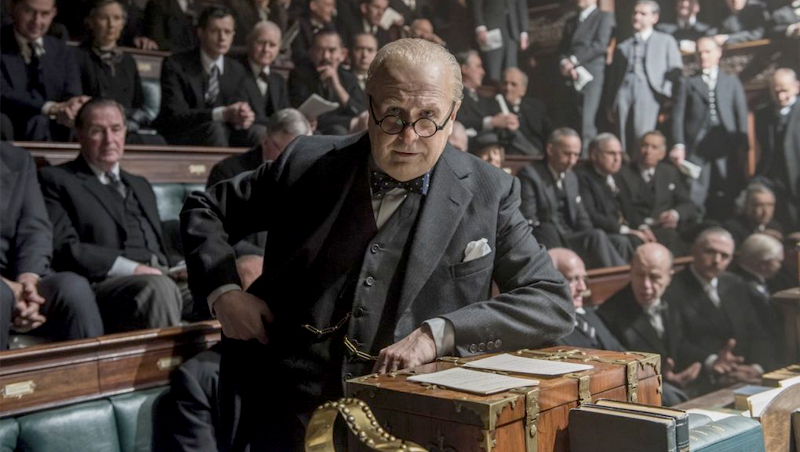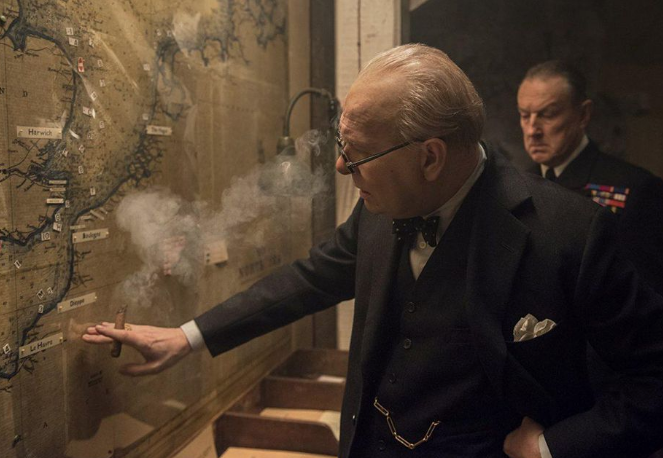 The scene works in spite of itself, but it nonetheless represents an unforgivable sin of sewing up a mess of a movie with a flurry of hand-stitching. “Darkest Hour” is a brief, and presumably misleading, biopic aimed more at winning awards for acting than in connecting our modern political problems with those of the past. Here is a film to sip tea over, rather than watch with any sense of urgency or relevance beyond the endearing performances of its cast.