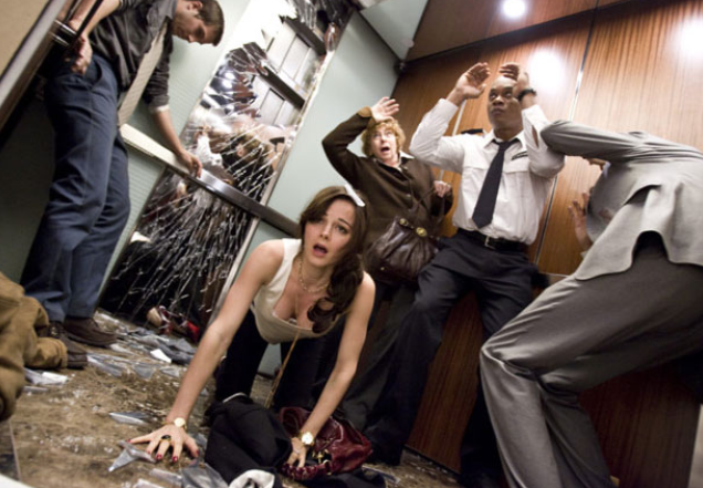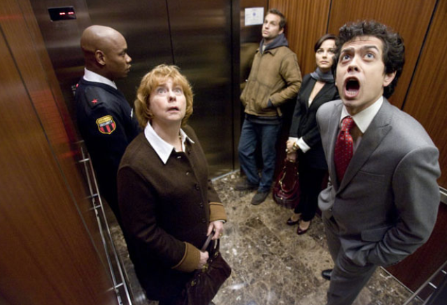Squeaky plot devices abound. The lights in the surveillance-equipped elevator inexplicably go out at regular intervals, allowing unseen harm to gradually come to each of the riders.