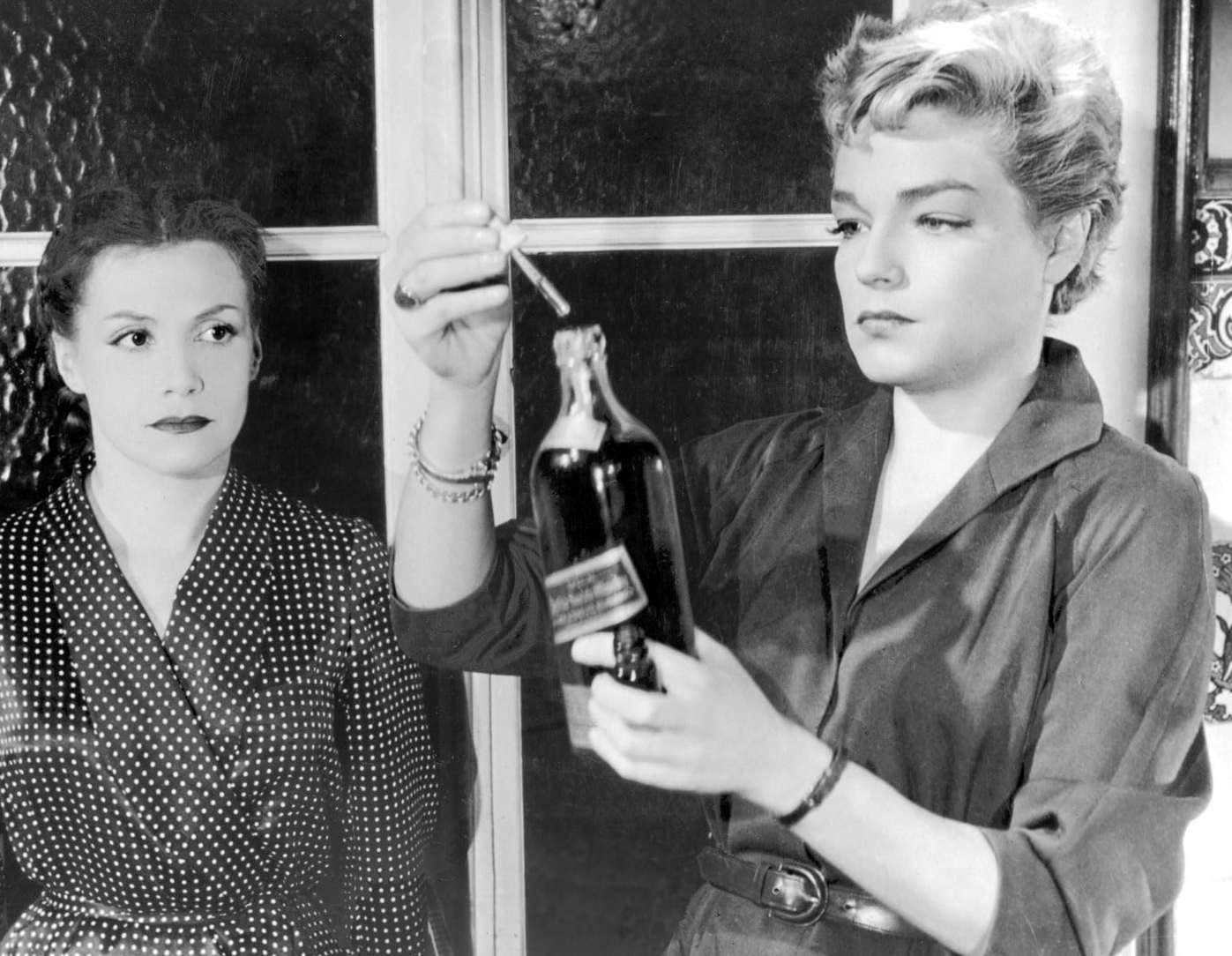Christina and Nicole agree on poison as their method of murder. Clouzot’s dark humor bristles with an indigenously French sensibility. Details of working-class postwar French life adorn every precisely composed scene.