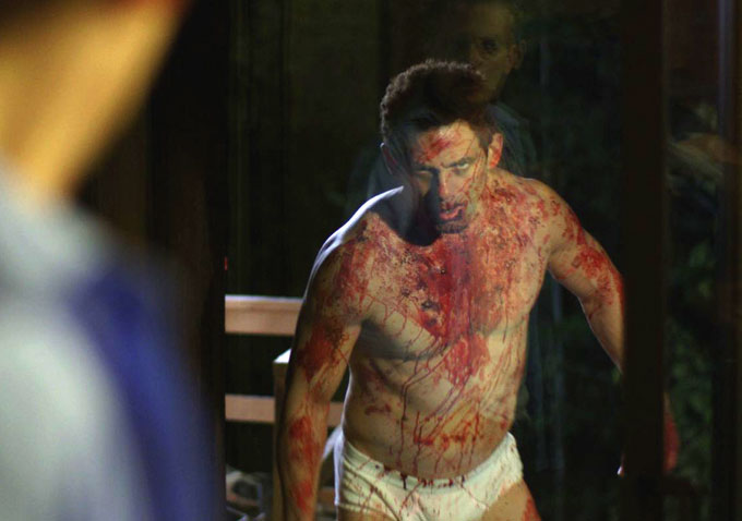 No amount of snow or cold can prevent the underwear-clad Eddie from hunting for blood. As it turns out, such carnage is just what Lars needs to fuel his inspiration on canvas. Artistic fulfillment coincides with romance. Lars’s newfound mojo acts as an aphrodisiac to his comely co-worker Lesley (Georgina Reilly). Lars points Eddie in a homicidal direction in order to stimulate his own fetishistic need for seeing gore that will inform his ability to make marketable paintings.