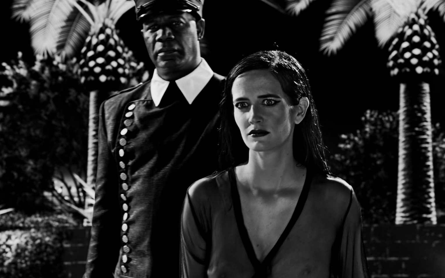 Eva Green’s Ava is a femme fatal few men can resist, especially Dwight, whose body and soul Ava owns. Layers of noir-inflected shadows do little to hide Ava’s nude body that she uses to flaunt, taunt, and screw her way up the ladder of financial supremacy. Not even Barbara Stanwyck in “Double Indemnity” had anything on Ava’s hot-and-cold personality. When Ava takes a midnight swim in her mansion pool, the filmmakers take full advantage of the opportunity to frame Eva Green’s sensuous body from above and below the water’s surface. The erotic effect is spellbinding.