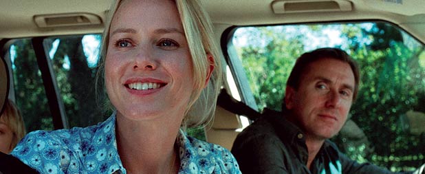 Husband George (Tim Roth) tries to guess which Vivaldi song his wife Ann (Watts) has put in the CD player. It’s a rich person’s diversion that identifies the family operating smugly within a bourgeoisie paradigm of status quo tranquillity. Suddenly, the most satanic wail of heavy metal anti-music interrupts the action like a tidal wave, care of John Zorn. Zorn’s parody of heavy metal music boldly announces the bitter cold irony in the offing.