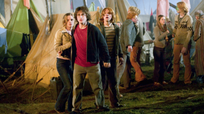 Early on, Harry has a nightmare about Lord Voldemort (Ralph Fiennes), the cruel villain responsible for murdering his parents. The story shifts to the Quidditch World Cup where Harry and his friends witness an attack on the wizards’ tent city by Voldemort’s gang of Death Eaters.