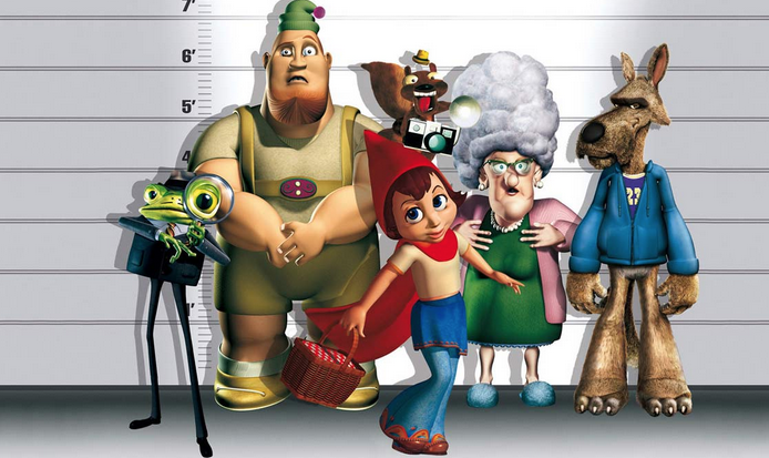Red questions the Wolf at length before the scene comes to an abrupt finale when her gagged-and-bound Granny pops out of the closet just as a Woodsman bursts in with his trusty ax. Detective frog Nicky Flippers (David Ogden Stiers) arrives at the scene to weed through four interweaving testimonies told by Red, the Woodsman (Jim Belushi), Granny, and the Wolf (Patrick Warburton).
