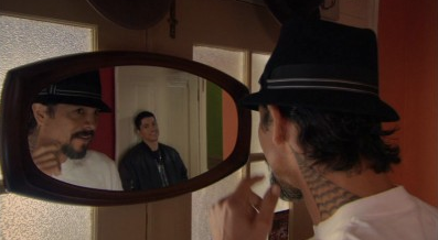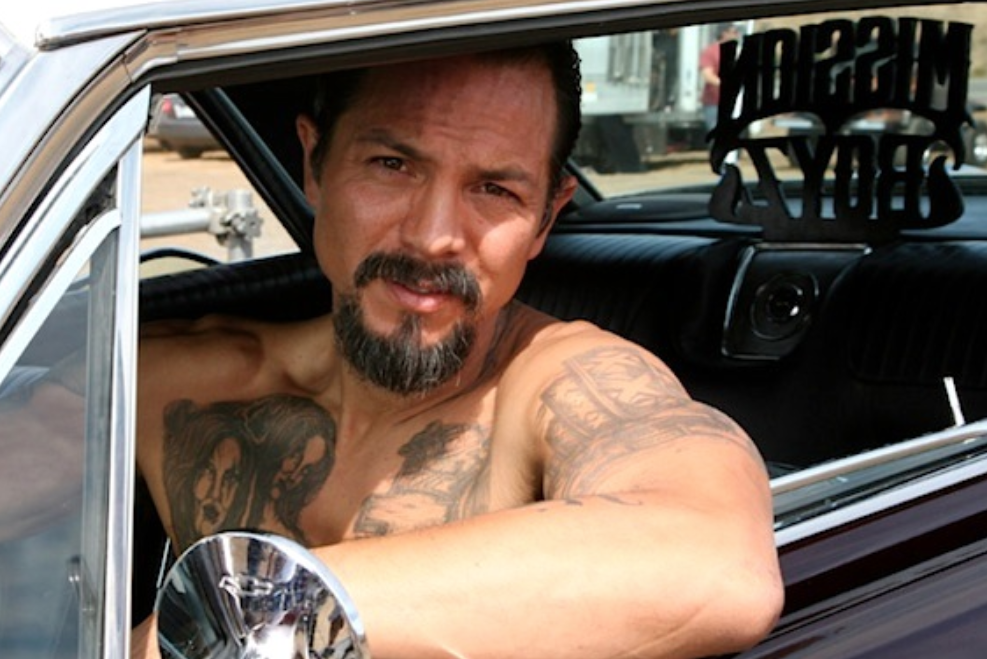 What follows is a preachy diatribe on Che's self identity as a low-rider whose masculinity he compares with the posters of Marlon Brando and Clint Eastwood that adorn the garage workshop where he keeps his super clean hot rod looking good.