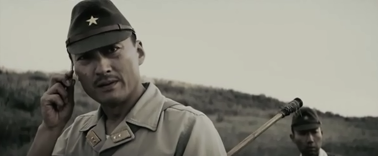 Saigo (Kazunari Ninomiya) dreams of returning to his life as a baker. He yearns to be with his wife and daughter, who was born after he was sent to war. Ninomiya’s character carries the film’s theme of hope. The talented young actor’s unvarnished performance has an innocent vitality that operates on a primal level of childhood innocence. He’s never self-pitying. As such, he gives the audience something to identify with beyond his conflicted sense of humanity and loss.