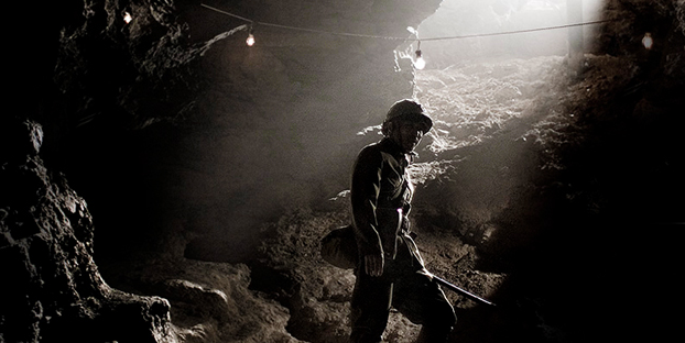 The moodiness of the visuals serves to restrain the potentially numbing effect of the often-traumatic violence onscreen. In one of Eastwood’s most effective usages of staging, a battalion of exhausted soldiers hide in a tunnel beneath the defeated ground of Mount Suribachi.