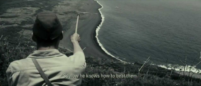 General Kuribayashi was later sent to take over command of battle preparations on the volcanic island of Iwo Jima where the Japanese government had sent their forces with the caveat that the soldiers would not leave. Eastwood has made the point that “this is not something you could tell an American [soldier] with a straight face.” The director emphasizes the attitudes and fears of the Japanese soldiers fighting against terrible odds for a death that will fulfill their duty.
