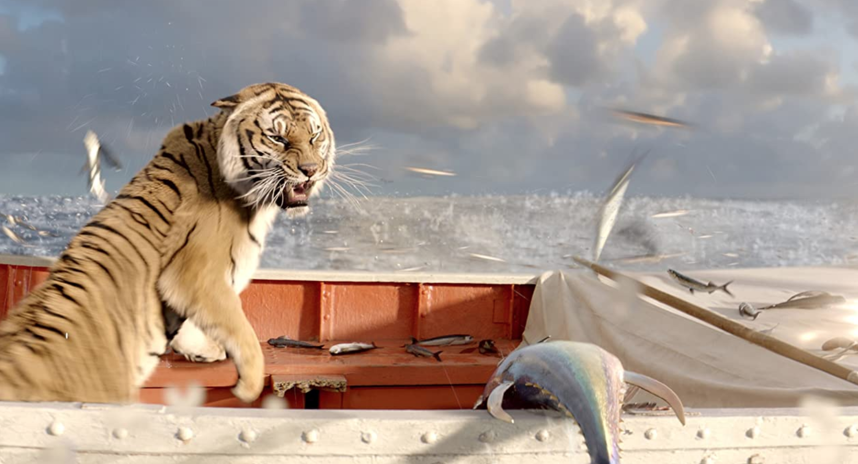 For 227 days, Pi endures an odyssey of subsistence. Every strand of Pi’s mental and physical fortitude is stretched far beyond its limit. Pi must not only build a separate raft to keep a safe distance from the tiger, but he must also strategize about how to provide for himself and the deadly cat. This helps focus his mind. Pi voraciously references the boat’s survival manual to make the best use of the food and materials inside its surprisingly ample hull.