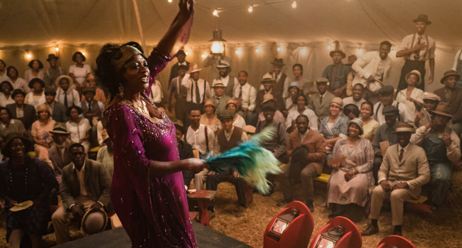 Viola Davis once again does August Wilson proud, this time as real-life ’20s era blues singer Ma Rainy. Bessie Smith ain’t had nothing on Ma. Davis does the impossible with a heartfelt if impeccable portrayal of a no-nonsense character capable of lifting the spirit of a nation. Davis is electric every second she’s onscreen. It will be a sin if Viola Davis doesn’t win a Best Actress Oscar for her indisputably magnificent performance here. You want to talk “scary?” This is nothing but rubber on road baby. Hairs will stand up on the back of your neck.