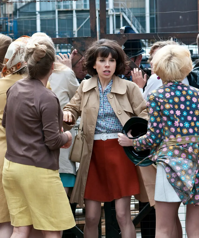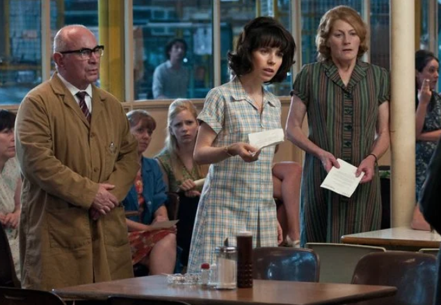 The ever cheery Sally Hawkins plays Rita, a Norma Rae-like frontrunner who takes the advice of her union rep Albert (Bob Hoskins) and pal Connie (Geraldine James), to lead her co-workers to strike over the 15% gap in pay between the women workers and their male counterparts.