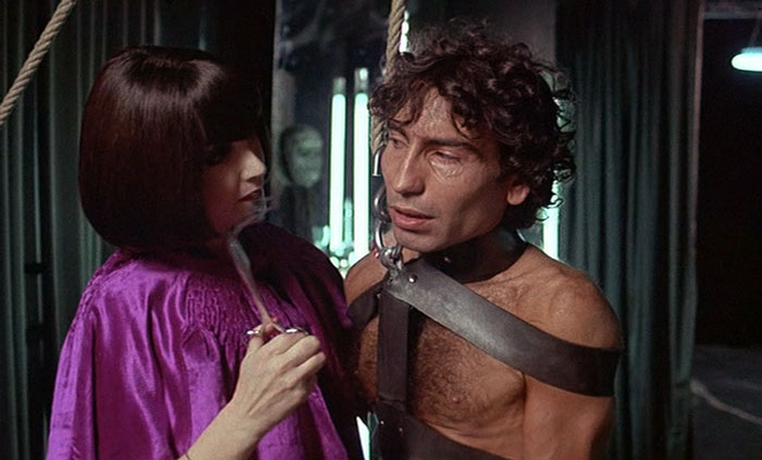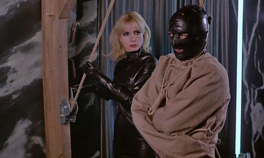 Crucial to Schroder’s non-judgmental treatment of sadomasochism is Roberto Plate’s fascinating production design that separates Ariane’s duplex apartment via a sliding coffee table that opens to reveal a retractable staircase descending into her well-equipped dungeon.