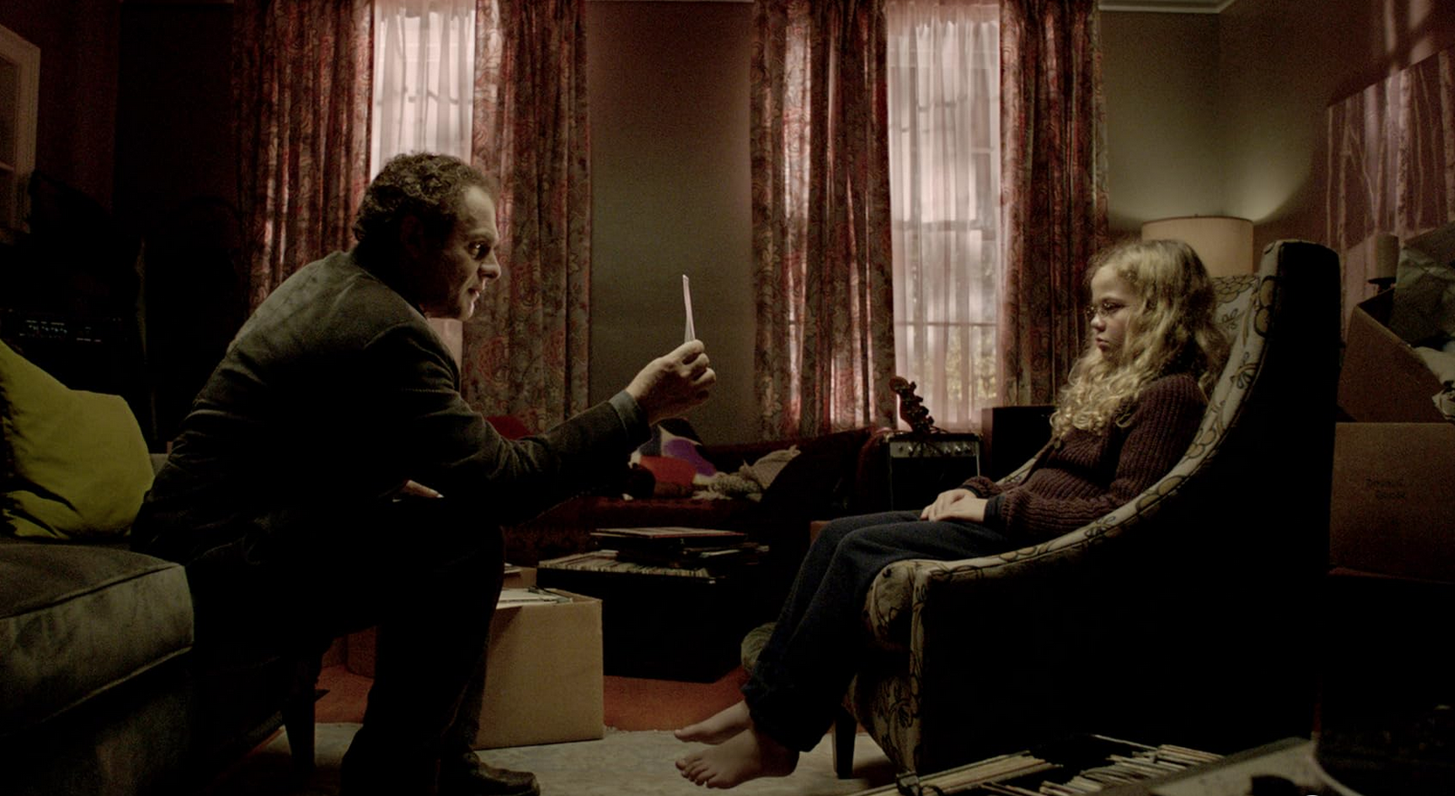 Lucas and his Goth rock bass-playing girlfriend Annabel (played by an unrecognizable Jessica Chastain in dyed hair and heavy eyeliner) battle for custody in spite of the fact that neither seems to possess much maternal or paternal instinct. They live in a glorified man cave. Musical gear and big rusty signs adorn their bedroom.