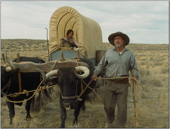Reichardt's decision to shoot the film in 4:3 aspect ratio gives it a televisual feel. There are plenty of arty landscape shots and center-dominant compositions, each ineffectual in its own way. Kelly Reichardt references Robert Altman's "McCabe & Mrs. Miller" as an influence on "Meek's Cutoff." Comparison between the films does not favor "Meek's Cutoff." Altman's film is a thousand times more modern. It is rich with texture and breathes with romantic tension. Different from Reichardt's film, Altman's movie is a character-driven story built of solid form. It doesn't hurt that its casting includes Julie Christie opposite Warren Beatty.