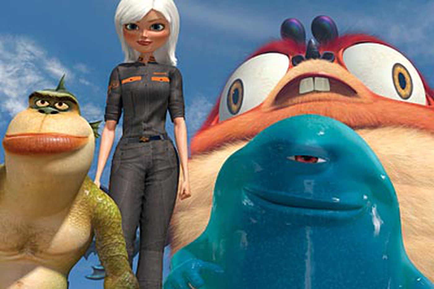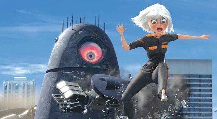 With a movie like "Monsters vs. Aliens" you sense the filmmakers attempting to show off every bell and whistle they can lay their hands on. Screenwriters Wally Wolodarsky, Jonathan Aibel, and Glenn Berger drew on '50s era sci-fi creatures (the 50-Foot Woman, the Blob, the Fly, the Creature From the Black Lagoon, and Mothra) to beef up a story about a trigger-happy military exploiting rare transmogrified creatures, that it has kept in a secret prison, to confront an invincible enemy.