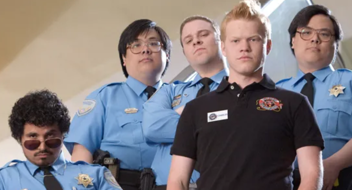 Ronnie lives in a testosterone-fueled bubble of self-entitled empowerment. He’s the school guard bully who sees himself as the line between good and bad simply because he wears a uniform. Never mind that Ronnie ruthlessly taunts a Middle-Eastern sales clerk unfortunately named Saddamn (hilariously played by Aziz Ansari). Ronnie has authority and he’s going to push it as far as it will go. A regular at the firing range, along with his subordinate security guards Dennis (Michael Pena) and twins John and Matt (played by John and Matthew Yuan), Ronnie is a sharp shooter with a semi-automatic who dreams of carrying a gun on the job.