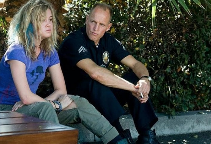 All is business as usual for a cop whose resentful teenaged daughter Helen (Brie Larson) calls him by his cop-buddy moniker when he returns home in the evenings. His younger daughter (by Helen’s-mom’s-sister) has a burning question: are she and her sister inbred? The improbable cop’s female-dominated home life matches in artificiality everything that follows with an adulterous affair involving Linda, a prosecuting attorney played by Robin Wright. Linda likes to announce her love of "sucking cock." You can almost hear the screenwriters yucking it up in the background. Harrelson’s bad-boy cop lives with his wife and ex-wife (siblings played by Anne Heche and Cynthia Nixon, requiring even more suspension of disbelief).