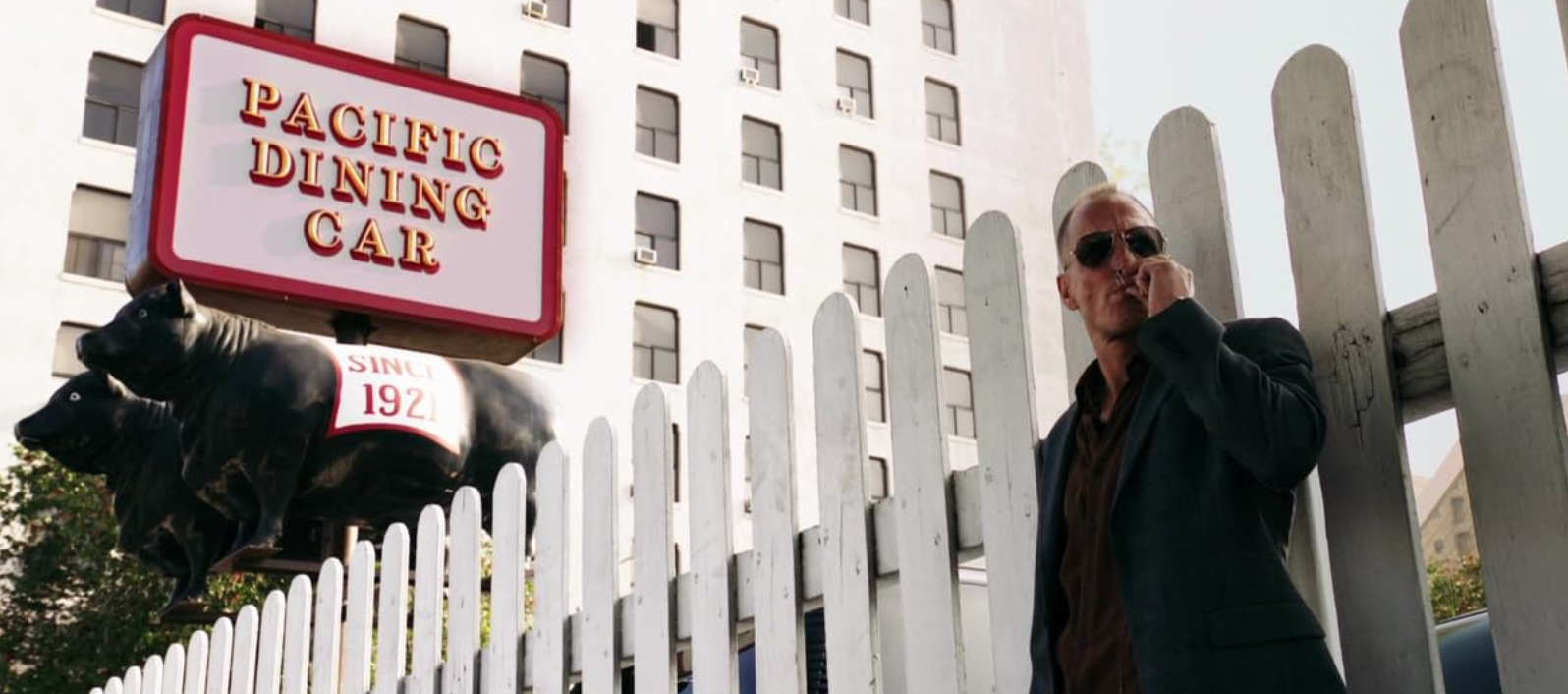 Harrelson's lunatic white cop prototype is formalized within an inch of its life; all the writing mechanics show.