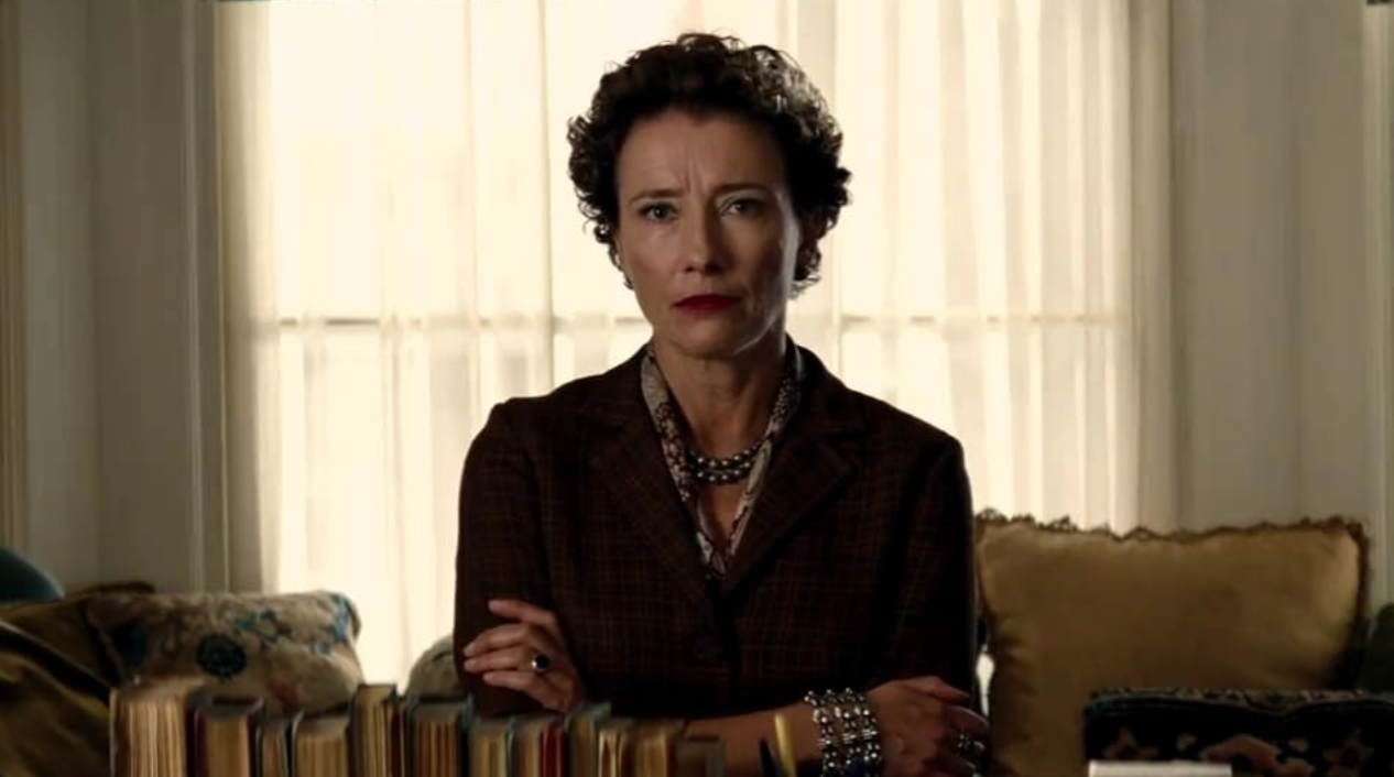 Emma Thompson has the thankless task of playing British novelist P.L. Travers, whose fierce temperamental nature comes through in little things she says and does while being hosted by Walt in Los Angeles in order to collaborate on the screenplay and music for his planned film production of “Mary Poppins.”