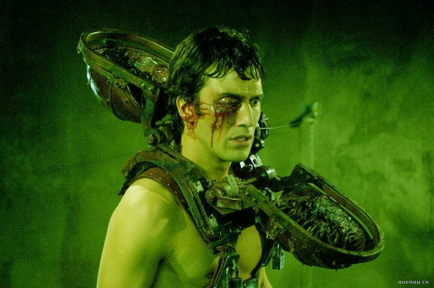 In the opening sequence, a man sits with a spring-loaded Venus flytrap device attached to his head as he watches a video tape of his eye being implanted with a key to the contraption.