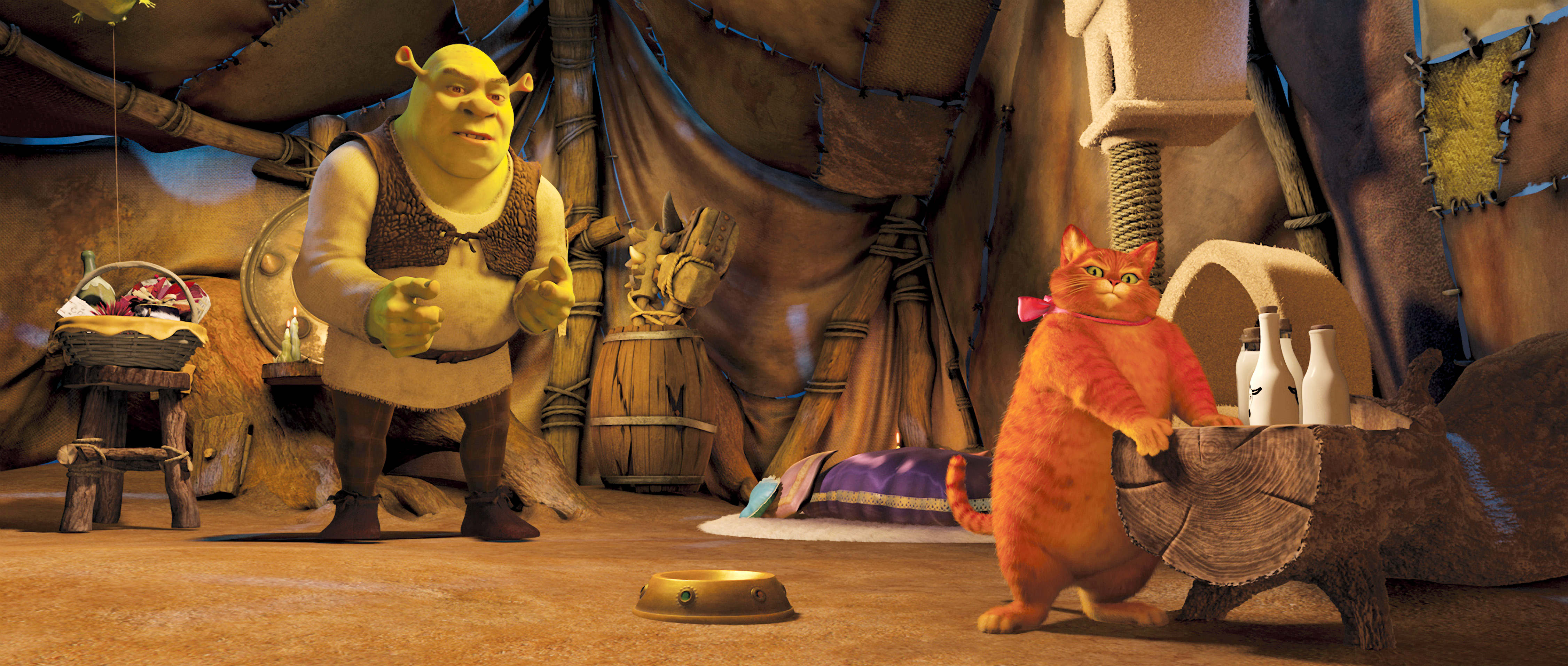 When the fat little Puss drags sideways down his scratching post to greet Shrek, it’s all the more funny because we know he’s showing off for his pal. And when Fiona drops her she-warrior act long enough to allow a kiss from the ogre she was destined to be with forever after, we get that special kind of romantic charge that reminds us about why and how intimate relationships are important.