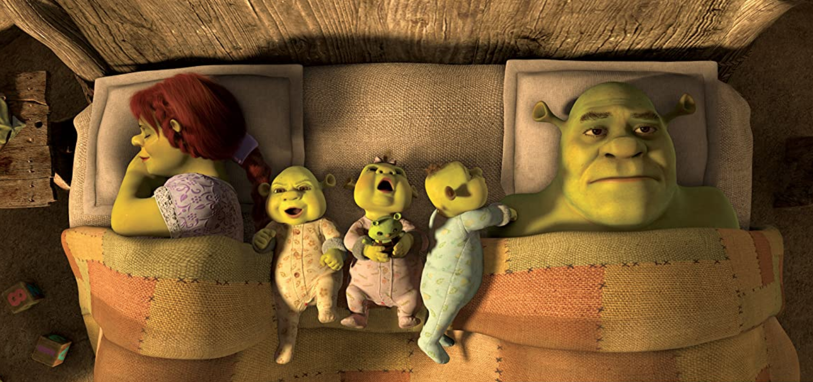 The premise is simple enough. Now happily settled down with his ogre wife Fiona (Cameron Diaz) and their three babies, Shrek (voiced by Mike Myers) yearns for the old days when every person and animal in the community feared his brutish gaze and stone-rattling roar.