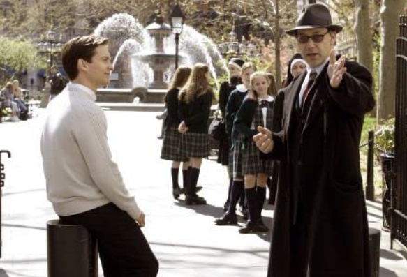 Maguire’s Peter Parker spends much of Spider-Man 2 looking askance at his alter ego, and takes a hiatus from wall-crawling long enough to boost his college grades and sit in the audience for Mary Jane’s telling performance in a production of The Importance of Being Earnest.