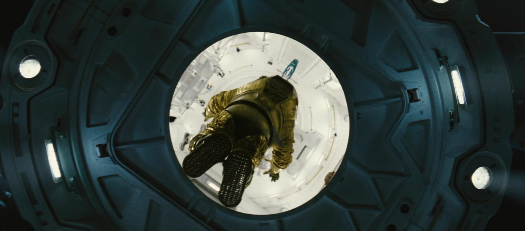 For as impressive as the Icarus II’s gold colored mile-wide reflective disc is for its protective reflecting power against the Sun, the introduction of a fuzzy-framed ghost man neutralizes the poetic spell. Boyle makes a disastrous visual misstep in his decision to only show Pinbaker’s shifting image through hazy stop-action framing that transforms the already artificial character into an unexplained apparition.