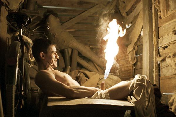 Vendel (Csaba Czene — an actor with a decidedly pronounced hair-lip) is a young soldier stationed at a remote farm where he answers to his tyrannical superior officer Hadnagy (Istvan Gyuricza), when he isn’t peeping on the women whom he ostensibly protects while masturbating with the aid of fire, of all things.