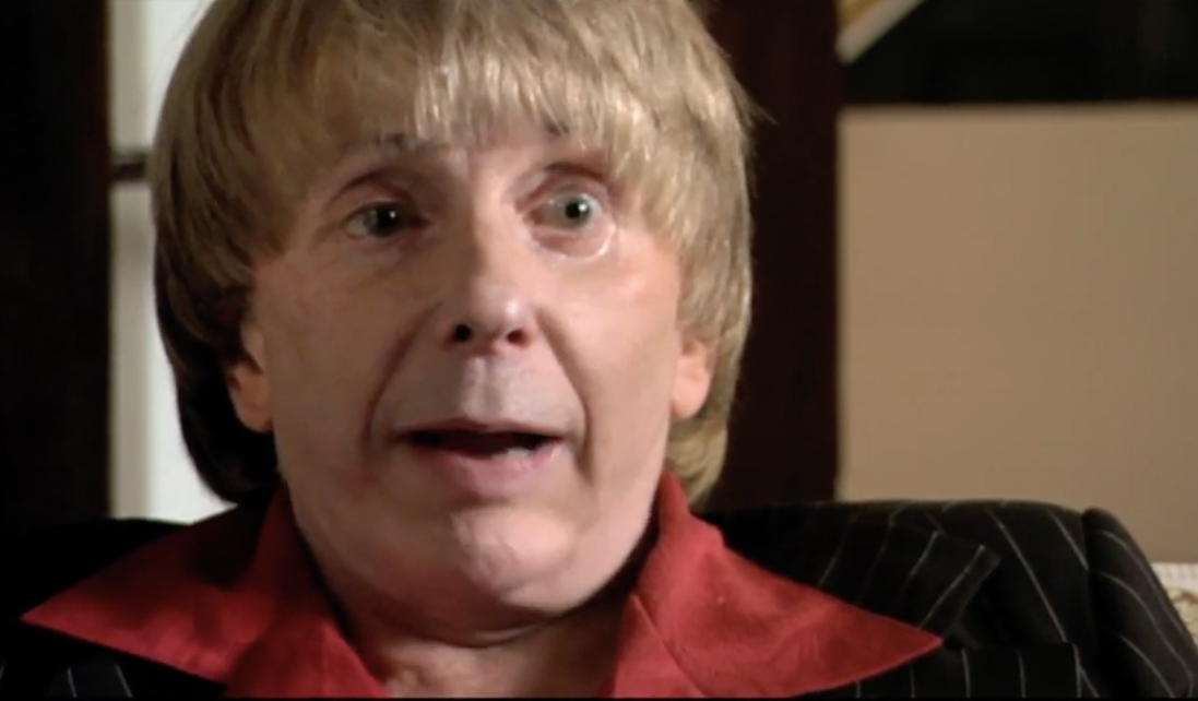 A sizeable amount of the film revolves around one-on-one interview footage shot inside Spector's plush mansion. For his big close-ups Spector reveals himself to be a compulsive liar–listen to him laugh about having his "hair done for four hours," when it's obvious that he wears wigs. And what a collection of hairpieces! Spector's relaxed reminisces about his storied musical career with artists like Tina Turner, and his long-held disdain for Tony Bennett, reveals his outsized ego.