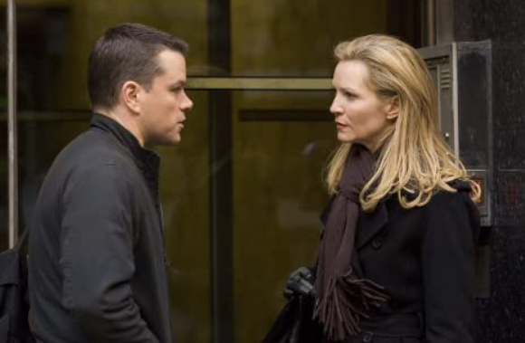 CIA specialist Pamela Landy (Joan Allen) returns from the last "Bourne" movie to assist Vosen in trapping his quarry, but becomes suspect of the chief’s unethical treatment of the case. The interior female-inflected shift to Bourne’s side coincides with the return of suave CIA op Nicky Parsons (Julia Stiles) juat after Bourne has efficiently finished off a goon squad inside CIA offices in Madrid.